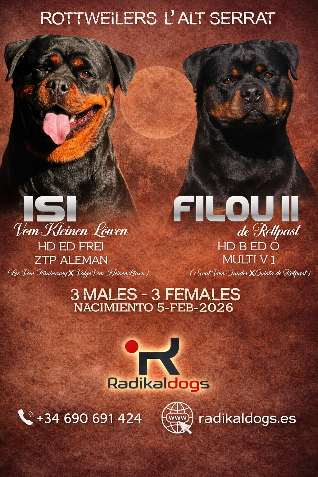 Radikaldogs residencia canina y criadero profesional, ofrecemos un entorno moderno, seguro y pensado para el bienestar de cada perro. Con instalaciones amplias y una atención profesional que garantiza una estancia cómoda, tranquila y adaptada a las necesidades de cada animal. También ofrecemos cachorros de alta calidad criados con responsabilidad, seleccionando genética, salud y temperamento para ofrecer ejemplares equilibrados y excepcionales.